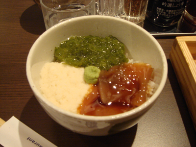 我點的三色丼(淺漬鮪魚、山藥泥跟某種海藻)+蕎麥麵套餐