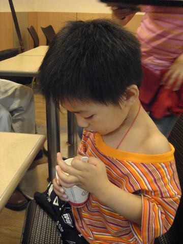 小綿羊哥「呼,吃完了怎麼辦,下次什麼時候再來?」賣字郎註:這是兩個小鬼溫良恭儉讓的照片,下次考慮把他們兩個在打架搶玩具的影片放上來,讓各位看倌知道外表可愛的小孩私底下根本就是惡魔附身。